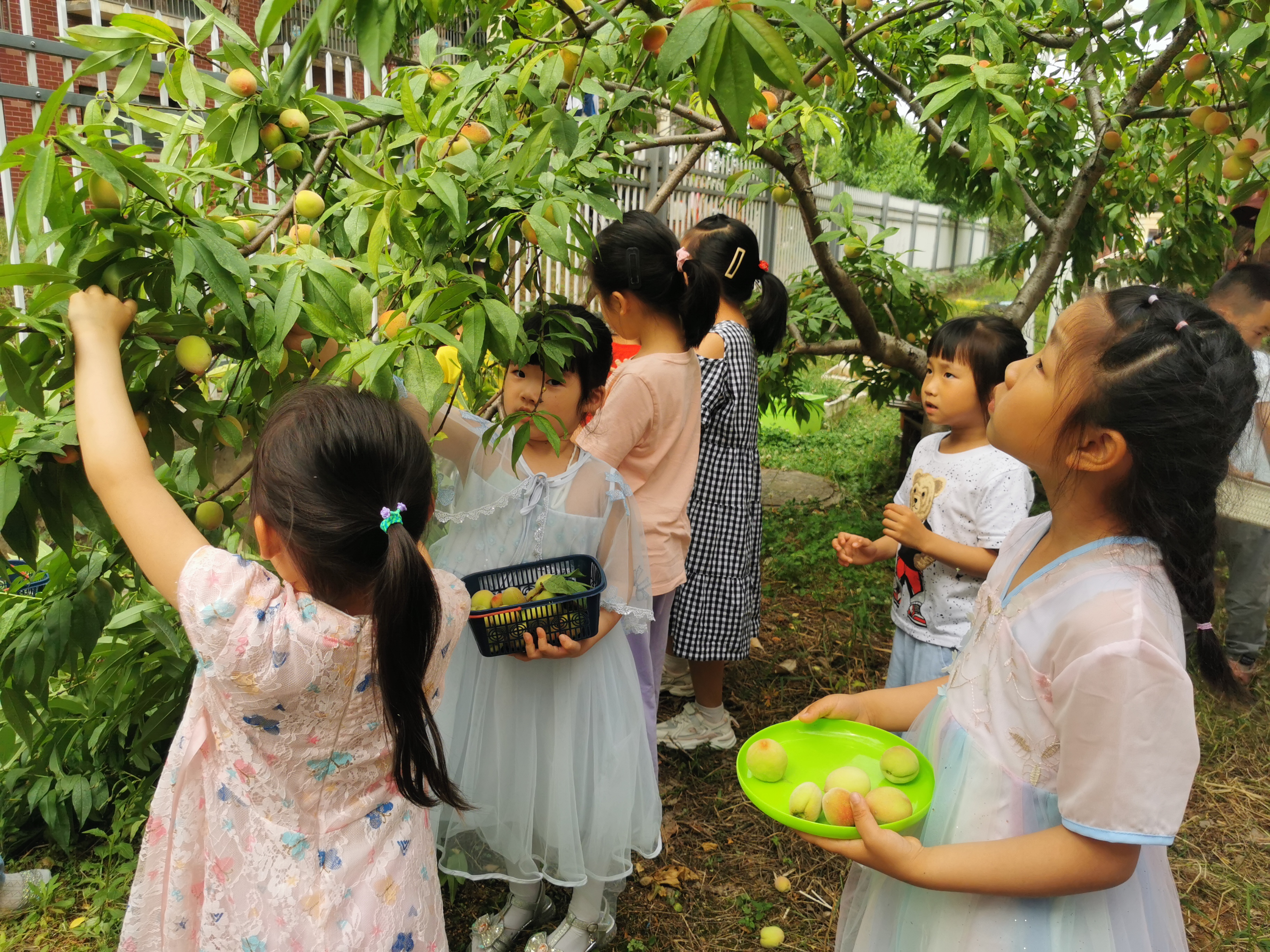 一场疫情,让孩子们错过了幼儿园桃花盛开的景象,刚复学不久就迎来了硕果丰收的季节,又到了桃子成熟的季节,今年的桃子结的真多,满树红艳艳的桃子挂满树梢,压的桃枝都低下了头,煞是喜人!这可是绿色无污染的大桃子,孩子们早已对它垂涎已久了!5月27日下午,我带着大一班的孩子们来采摘桃子,感受夏日的勃勃生机和大自然的美好,让孩子们亲近自然、开阔眼界,发现身边的美景,感受人与自然的和谐。 首先,在采摘活动开始之前,老师为小朋友们讲解了关于桃子的相关知识吧!桃子的身上长满了毛毛,接下来就开始行动摘桃子吧!孩子们有的拿着筐子、有的提着袋子、全副武装的进入桃林。伸手可及的桃子踮一踮、跳一跳就可以摘到,高处枝头上的桃子是最红最大的,我们请老师来帮忙吧。孩子们有说有笑忙得不亦乐乎,喜悦之情荡漾在每一张小脸上。 劳动后是满满的收获, 孩子们有的三五成群比谁摘的大、谁摘的红,共同分享今天这个快乐的时刻。随后孩子们将丰盛的劳动果实都分享给幼儿园每个小朋友和老师们,让大家一起共享这劳动的果实。 通过此次采摘桃子的实践活动,让小朋友们与大自然有了亲密接触,更好认识大自然对于我们的馈赠,开阔了眼界,丰富了知识,同时通过采摘,也锻炼了自己的体魄,变得更勇敢了、更珍惜劳动果实了。 |