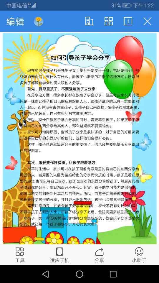 这样,孩子也许就知道分享的重要性了,他也会想要把快乐分享给自己的好朋友。