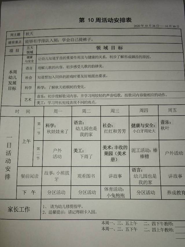 第十周教学安排