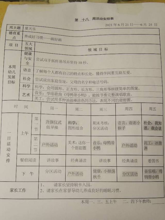 第十八周教学安排