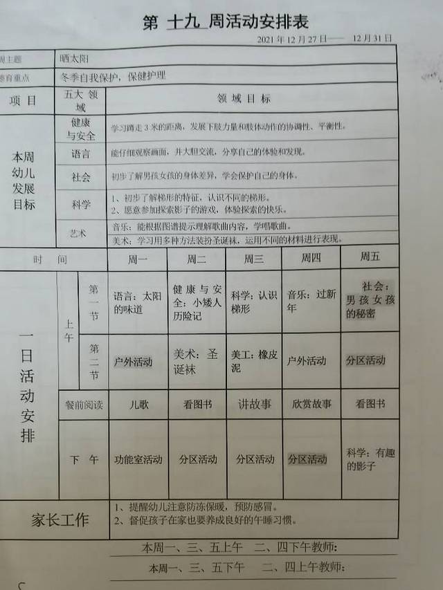 第十九周教学安排