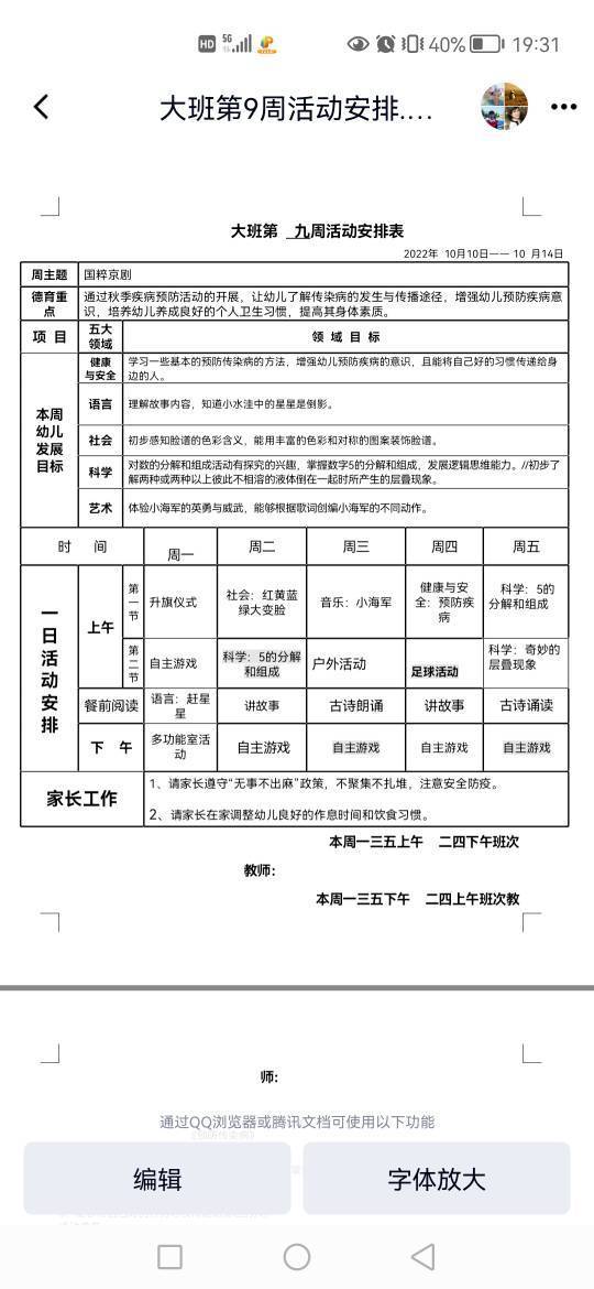 第九周活动安排