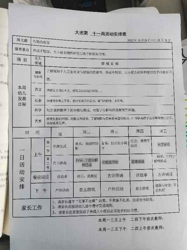 第十一周活动安排