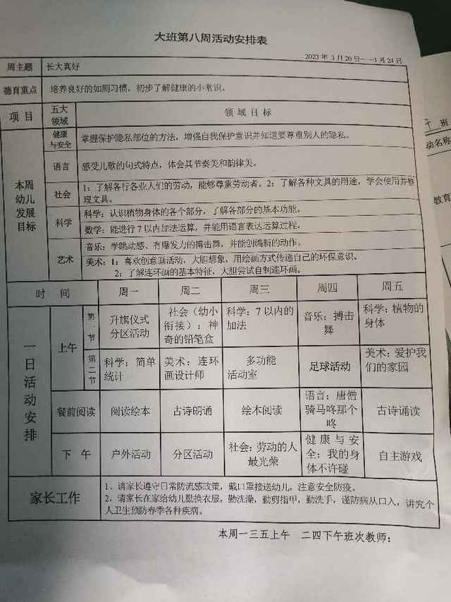 第八周活动安排