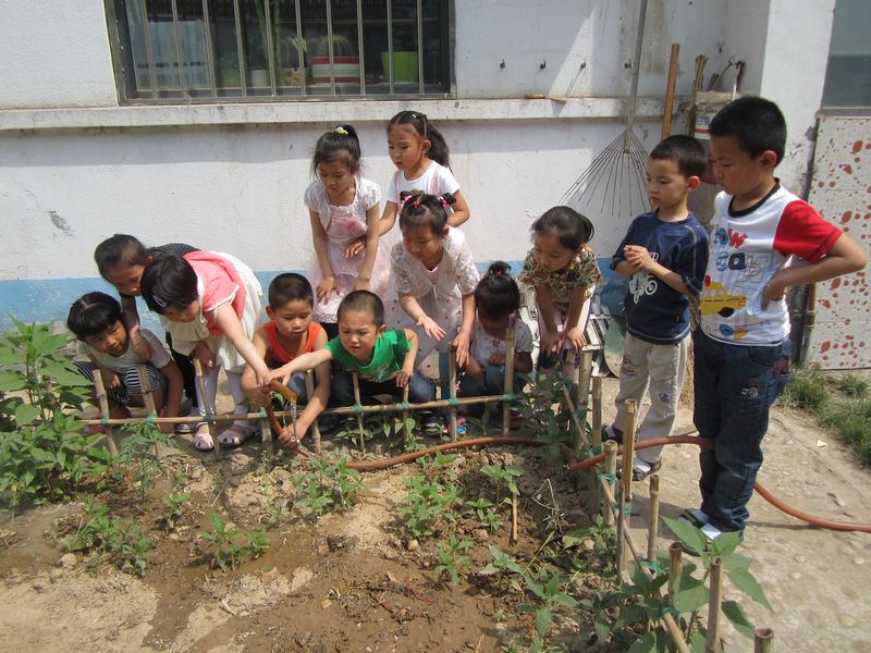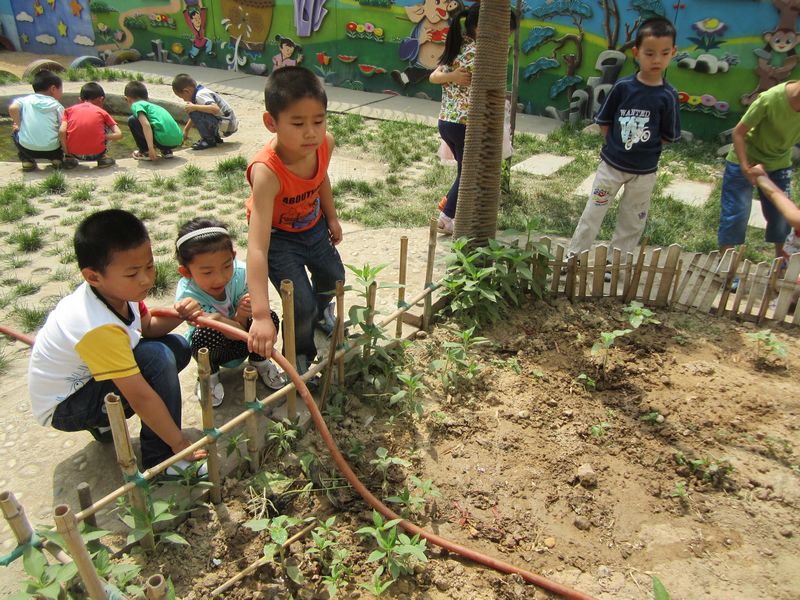 我们幼儿园的“小菜园”里种了许多的蔬菜,这一周轮着我们果二班的小朋友来照顾这些小苗苗了。从周一开始,我们每天上午户外活动时间,老师就会带一部分幼儿去“小菜园”里给小苗苗浇水、松土,今天是一三五组幼儿去的,看孩子们多能干,他们拉着水管子给这边的苗苗浇一浇,再给那边的苗苗浇一浇,干的非常高兴,三木还告诉大家,小苗苗说:谢谢咱们呢。看孩子们多有想象力,三木的话逗得大家哈哈笑了起来,看着孩子们开心的笑脸,我也抑制不住了,和孩子们大笑起来。
