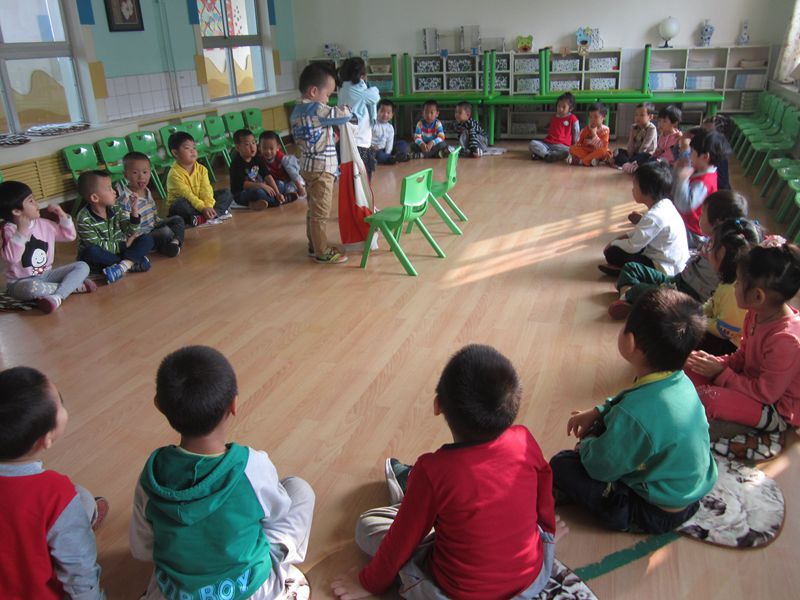 今天上午的主题教学是《我能行》,目的是让幼儿知道自己已经长大了,应该自己的事情自己做,增强自我服务意识及劳动观念。