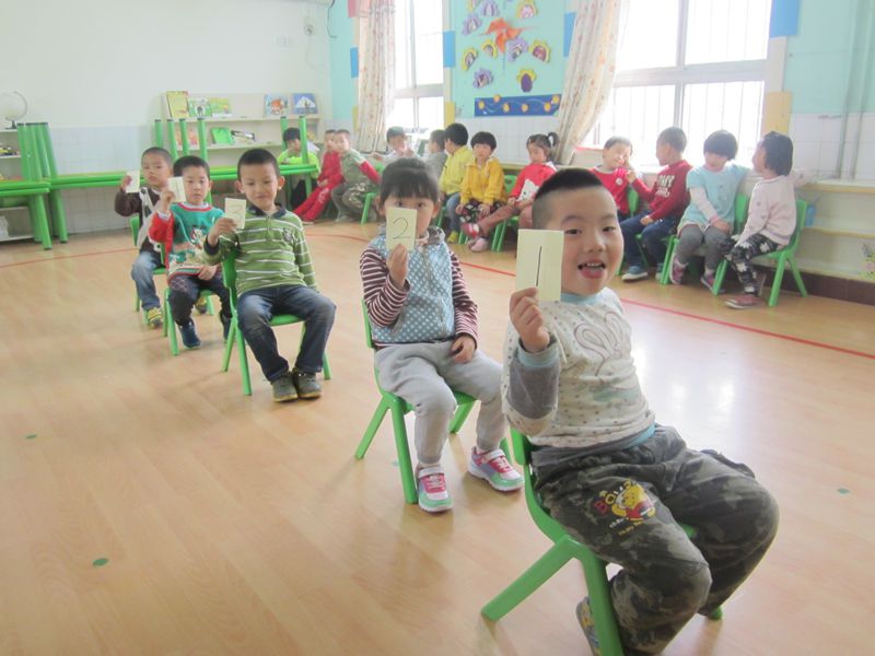 今天的数学课是《真快乐》,目的是让孩子们初步感知5以内的序数的含义以及它在生活中的应用,并且能从某一个方向确认物体的排列次序,从而体验基数与序数的区别。 首先,我们通过观察小动物的家,让孩子们感知什么是基数(表示物体的总个数—回答有几个),什么是序数(用自然数表示事物排列的次序—回答第几)。接下来我们玩了坐火车的游戏,让孩子们观察火车上一共坐了几个小朋友,某某小朋友在第几节车厢坐或第三节车厢坐的是谁?此游戏让孩子们亲身感知体验了基数和序数的不同,并且明白了什么时候用基数回答,什么时候要用序数回答。最后,我们一起完成了智力卡上的练习题。 家长朋友在家也可以和孩子玩这个游戏,如让孩子观察家里物品的摆放顺序。游戏中首先要求孩子的观察顺序是从左到右的顺序,然后再提问其他方面,如:从右到左、从上到下、从下到上的排列顺序。
