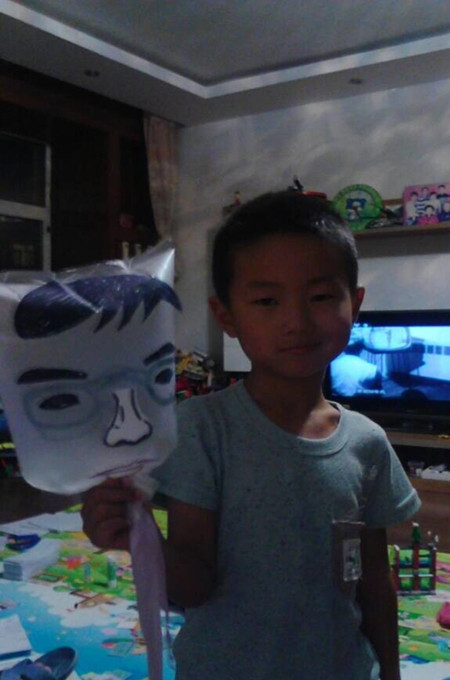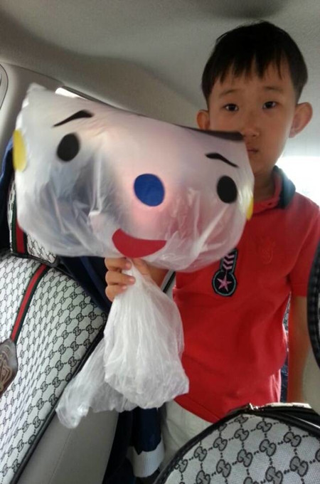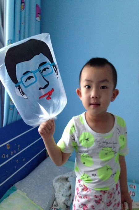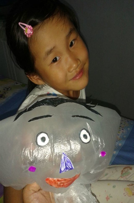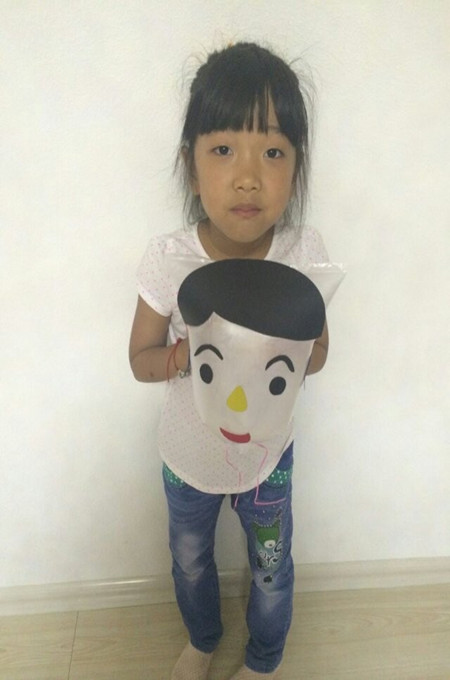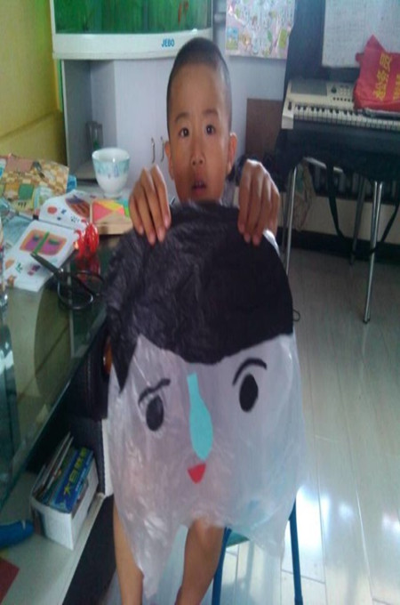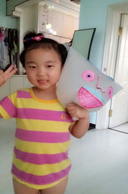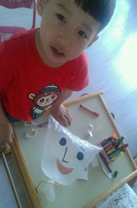 用废旧塑料袋制作“卡通老爸滴形象”最好让贝儿牛们自己动手绘画、剪裁、粘贴、妈妈们协助哟~~~~