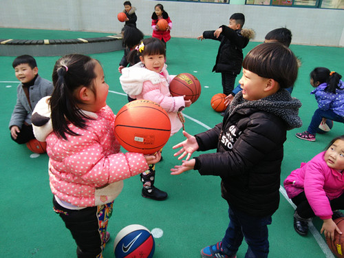中班下学期,孩子们在熟练掌握了拍球的技巧后,我们又开展了抛接球的户外游戏《袋鼠妈妈接球》。 一、热身活动: 首先是小袋鼠的活动操:袋鼠妈妈有个袋袋,袋袋里面有个乖乖,乖乖和妈妈相亲相爱,相亲相爱。 然后小袋鼠们进行自抛、自接球的游戏以及你抛我接球的游戏,来锻炼身体,看谁接的准。