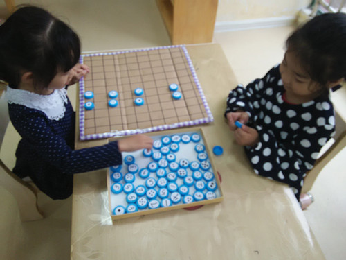 区域名称:动手动脑——翻翻乐、找朋友 材料准备:贴有不同颜色和花纹的瓶盖及贴有不同数字和点的瓶盖。 玩法:此游戏需两名幼儿玩,双方轮流翻两个瓶盖,图案一样的就收回自己家,接着再翻一次。如翻出的图案不一样,再盖回去,由另一方接着翻 玩法:一人玩:根据数字(点数)找出相对应的点数(数字);两人玩:一名幼儿拿出贴有数字(点数)的瓶盖,另一名幼儿快速地找出相对应的点数(数字)瓶盖。