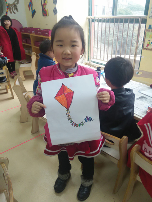 1、喜欢讨论风筝的话题,欣赏风筝对称的艺术美,激发对民间艺术的兴趣。 2、了解风筝的各种造型和颜色,运用对称装饰的方式大胆对风筝进行装饰。 3、用对称的方法尝试表现出不同形状的图案,体验动手制作以及合作的快乐。 重难点: 培养幼儿大胆想象和动手能力,能用对称的方法装饰风筝。 活动准备: 课件(各种造型和颜色的风筝图片),记号笔、水彩笔、油画棒、儿歌“放风筝”。 活动过程: 1、播放“放风筝”儿歌并与幼儿讨论儿歌的内容,激发幼儿对风筝的兴趣。 2、播放课件,观察各种各样的风筝。引导幼儿观赏五颜六色、造型各异的风筝图片并自由讨论。 3、教师与幼儿共同讨论风筝话题,激发幼儿对风筝进一步的认识和想创作美丽的风筝的愿望,感知风筝的对称美。 (1)、幼儿自由发表意见。 (2)、引导幼儿感受风筝左、右边两边形状和图案的对称美。 引导幼儿感受这只风筝的左边和右边的形状和图案都是一样的。 教师:请小朋友看看这只风筝左边的翅膀和右边的翅膀,你发现了什么?翅膀上的图案呢?一样在哪里?(引导幼儿说出图案的大小、颜色、形状和位置都是一样的) (3)、幼儿讨论如何装饰风筝面。 4、提出要求,幼儿作画,交代装饰要求。教师巡回指导。 (1)、出示并介绍操作材料。 (2)、感知中心线,提醒幼儿装饰时,注意花纹、图案左右对称,进行对称装饰。重点强调位置对称的装饰。用色时注意色彩的对比。 (3)、鼓励幼儿大胆作画,帮助能力较弱的幼儿完成作品。 5、评价作品 (1)、幼儿自我评价,介绍自己的作品。 (2)、 幼儿相互评价,夸夸它好在哪里? (3)、 展示色彩协调、图案设计独特的作品,引导幼儿欣赏,进一步提高幼儿的审美能力。 活动延伸: 谈话活动:放风筝时应该注意什么? 活动效果: 《美丽的风筝》这一美术活动,其目标主要是让幼儿在欣赏风筝的基础上,感知风筝图案的对称美;能利用对称的方法来装饰风筝。这次活动的重点放在对称装饰上。在作画前,我先让幼儿欣赏风筝,并在观察欣赏之后,交流自己的发现,有的幼儿观察十分仔细,很快就发现了其中的秘密:风筝上的图案是左右对称的。于是,我就向幼儿重点介绍对称装饰的画法,让幼儿清楚地了解对称法的特点。在此基础上,让幼儿说说自己看到过的风筝图案,满足了幼儿自我表达的愿望。幼儿发言积极,气氛十分活跃。在看看、讲讲中,幼儿对风筝有了进一步的认识,为接下来的创作做好准备工作。在作画过程中,幼儿能运用对称法来装饰风筝且此方法掌握得比较好,达到预期的效果。但在活动中还存在着一些问题,如:活动前给幼儿提供的图片存在局限性,限制了幼儿的思维及创作空间;幼儿间存在着个体差异,风筝图片的提供,对部分幼儿的创作有所限制,有的幼儿只是模仿,缺乏创造意识。有的幼儿想的很好,但能表现出来的却是很少。 绘画是幼儿表达心境的一种形式,也是对于自己感受生活的一种体现方式,所以,美术教育应重在亲身感受的体验和个性的表现。在今后的美术活动中,我将从幼儿实际出发,提供适宜的材料,有针对性地对幼儿进行美术方面的指导,发展幼儿的想象力、创造力和表现力。希望孩子们在接下来的亲子活动中能亲手绘制出自己喜爱的风筝的图案,并能积极地参与到活动中去。更希望孩子们在活动中能体验到浓浓的春意继而增进孩子与家长之间的亲子感情。