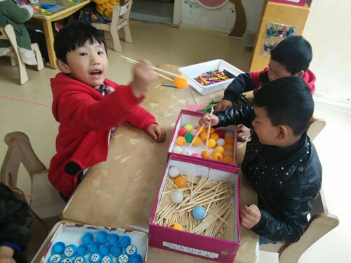 区域游戏是在正确的教育观,儿童观指导下,使儿童的认识水平、个性品质、社会化能力得到积极主动发展的重要物质条件。引导幼儿在自由、宽松的气氛中主动探索、学习,区域活动是体现幼儿在玩中学,学中玩,寓教育于游戏中的最好形式好之一。 新学期一开始,根据我班幼儿的年龄发展特征以及幼儿的兴趣需要,我班开设了美工区、体育区、阅读区、实景区(表演区)、建构区。 一、美工区:爱妈妈 材料准备:记号笔、手工纸、固体胶 玩法:学习用绘画、粘贴等方式给妈妈制作礼物,表达对妈妈的爱,增进母子之间的感情。 二、 建构区:快乐建构 材料准备:奶杯、纸盒、木块 玩法:提供奶杯和各种薯片桶,继续鼓励幼儿进行跨合作搭建,引导他们相互交流,培养幼儿学分享合作的品质。 三、实景区:小舞台 材料准备:服装、音乐、乐器、头饰道具 玩法:幼儿自主选择角色进行表演,培养幼儿的表演能力和语言表达能力。 四、体育区:大脚丫 准备材料:双板、宽敞塑胶场地 玩法:两名幼儿同向站立并手拉手,将脚分别套进双人板的套子内,按照一定的口令移动双脚。俩人保持一样的步调向前行。 五、益智区:夹夹乐 材料准备:乒乓球、一次性筷子 玩法:幼儿分成两组,用两根筷子夹乒乓球,夹的乒乓球数量多少来判定胜负。规定时间内,比如十分钟。 |