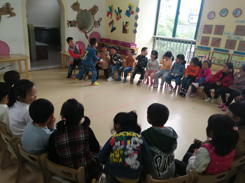 结束了户外活动回到班级,孩子们仍在兴奋地回味着刚才的游戏。安静的曲子已经弹了两遍,孩子们还在叽叽喳喳的说个不停。我灵机一动:“谁想来当老师?”顿时,高高举起的小手代替了刚才的喧哗。我随机选了姚羽翔,“欢迎姚老师带小朋友们玩游戏。”话音刚落,便是孩子们的哄堂大笑,对于这个新鲜的称谓,孩子们异常开心。只见“姚老师”走到伙伴们前面,做了个停止的手势,见没反应,又大声喊着:“别吵啦,你们都别说话啦”,笑声更响亮了,“姚老师”面露难色的望着我说:“老师,我不会弹琴,你能弹个安静的曲子么?”我趁机问他:“老师好当么?”他摇摇头回到座位上。接着又请了几个孩子来当老师,还是同样的问题困扰着小老师们,看着他们束手无策,干着急的模样,我问孩子们:“老师好当么?当你说话,别人也在说话不听你的时,你是怎么想的?”孩子们仨仨俩俩地在一起说开了:“老师真不好当哎”、“我长大了就能当老师了”、“我当老师时他们都不听我的”、“我在说话他们还在笑呢”“老师好辛苦啊,以后老师上课的时候,我们不要说话啦”······ 通过“我来当老师”让孩子们体会到了老师的不易,也明白了要尊重他人、遵守纪律的道理。 |
