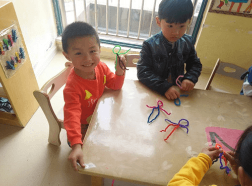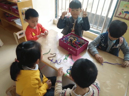 五、 益智区:扭扭棒,真棒! 材料准备:扭扭棒若干 玩法:幼儿根据自己的喜好,大胆发挥想象,用扭扭棒创作出各种不同的造型。如:数字、小人 发箍、小花等不同造型。