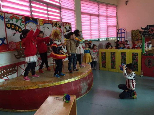 三、 实景区:木偶剧场 材料准备:服装、音乐、乐器、头饰道具 玩法:幼儿自主选择角色进行表演,培养幼儿的表演能力和语言表达能力。