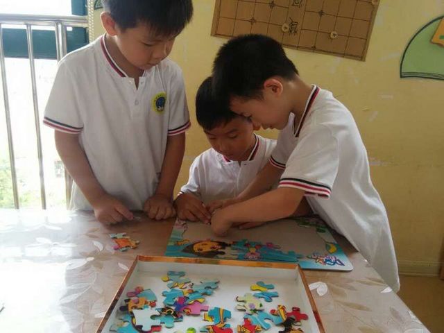 区域名称:拼拼乐 材料:各类拼图 玩法:幼儿自主拼图或者与他人合作。