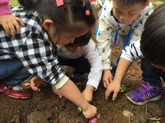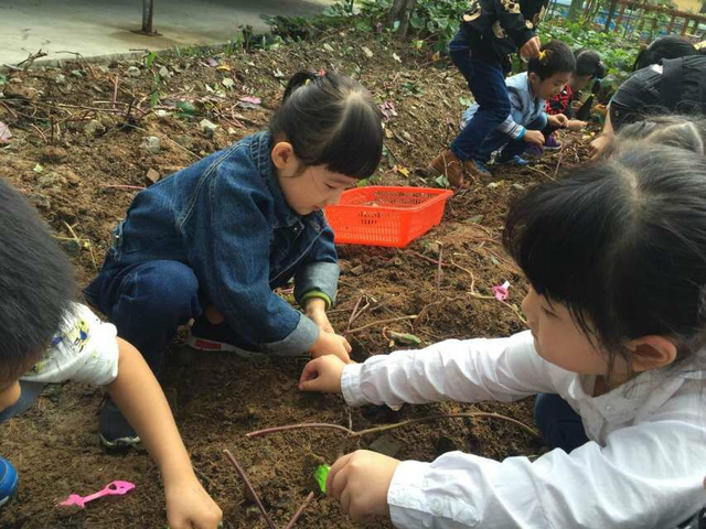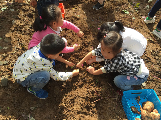 慢慢的孩子们发现想靠一个人的力量挖出红薯需要花费很长时间。孩子们先学会了合作。团结就是力量!