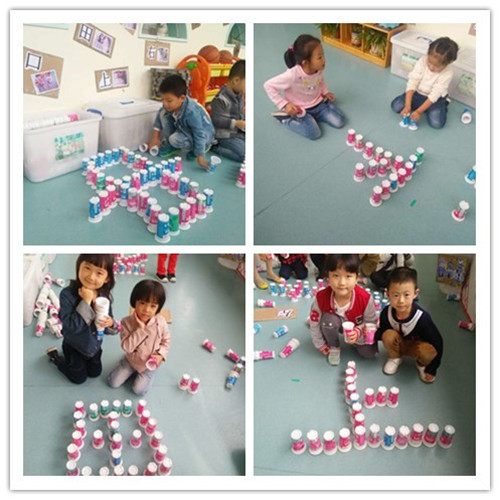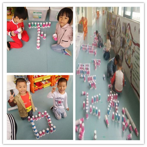 随着年龄的增长,大班的孩子已对周围环境中的文字产生兴趣。我们在平时的教育中,既要培养幼儿听、说能力和良好的听说习惯,也要进行相应的书面语言启蒙教育;既要帮助幼儿理解和运用日常生活用语,也要引导幼儿认识文字进而学习文学语言,培养幼儿对汉字的兴趣,认识一些简单的汉字。结合本月的“大中国”主题教育,我们开辟了建构区的“奶杯拼字”游戏活动。孩子们在拼字游戏中能认真观察,细心拼搭,体验到了游戏的快乐和成功的喜悦。 瞧,我拼的字儿~