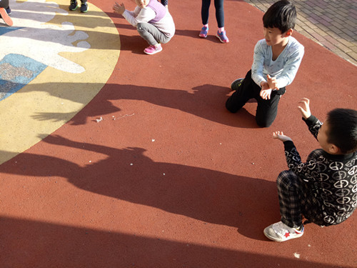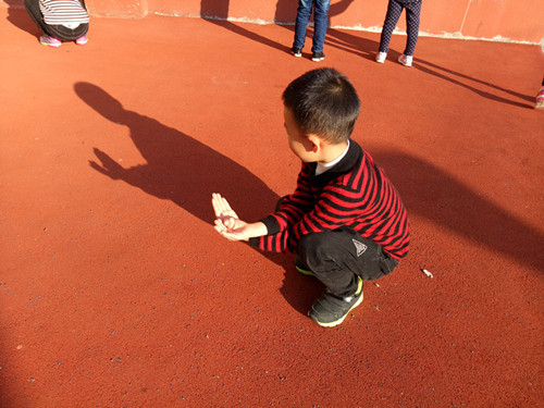 游戏名称:有趣的影子 游戏背景: 连续的阴雨天气后,久违的阳光使孩子们的笑脸更加灿烂,在户外活动时,孩子们开心的唱啊跳啊,互相嬉戏,有几个孩子还玩起了踩影子的游戏,于是,我们的游戏开始了! 游戏玩法一:踩影子 游戏目标: 1、幼儿练习在一定范围内四散跑,增强幼儿跑的能力。 2、锻炼幼儿在奔跑过程中的躲闪能力及快速反应能力。 3、了解光和影子的关系,体验游戏的乐趣。 游戏准备:阳光灿烂的户外场地。 玩法: 让幼儿发现自己的影子,踩自己的影子;然后想办法不让别人踩到自己的影子。幼儿两人一组,一个踩另一个的影子,另一个边跑边躲闪。谁被踩到影子谁算输,被罚出圈外。其他幼儿继续进行。交换角色,继续一人追踩,一人跑。 游戏玩法二:手影游戏 游戏目标: 1、发展幼儿的想象力和观察力。 2、激发幼儿对影子的探索、变化的兴趣以及好奇心。 3、进一步了解光和影子的关系,体验游戏的乐趣。 玩法:幼儿发挥自己的想象力,将自己的小手变换不同的造型,从而出现不同形状的影子。可单人玩,也可多人玩。 游戏效果: 通过游戏,幼儿练习在一定范围内四散跑,增强了幼儿奔跑躲闪的能力,培养了幼儿在奔跑过程中的快速反应能力。这个游戏不但能锻炼幼儿身体,还能开发孩子智力。在玩的过程中,有的孩子跑到背阴的地方,这样影子就没有了,别人也就踩不到了。还有的孩子直接往地上一躺,别人更是无从下脚;手影游戏中,孩子们充分发挥自己的想象力,玩出了各种不同的影子造型,有“老鹰”啦、“鲨鱼”啦、“小兔子”啦等等。在玩游戏的过程中,孩子们进一步了解了光和影子的关系。并且通过创新玩法,培养了孩子的创新意识和发散思维。