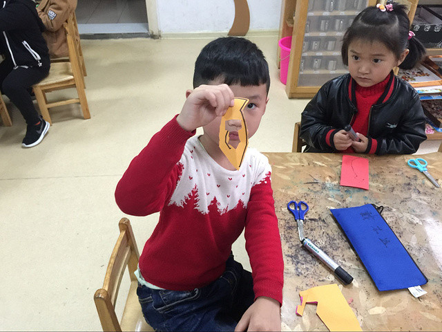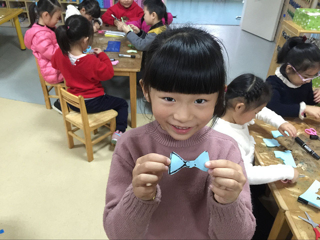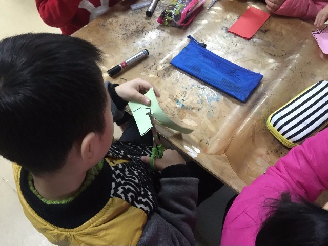 生成背景: 《爷爷一定有办法》这是一本充满爱和创造力的绘本。一个充满智慧并深爱着他的孙子的老爷爷,他利用自己的智慧将他的孙子约瑟的一条破毯子变成背心、领带、手帕、纽扣。故事中不仅有节约的观念,还充满了祖孙之间的爱。故事中爷爷所想的办法也非常的巧妙且充满创造力。一个物质充裕的年代,物品总是用完即丢,纸杯、纸盘、一次性碗筷等,孩子们不太有机会用旧东西而对旧物的巧妙利用正符合当前的环保教育,而让幼儿理解并学会合理利用。《爷爷一定有办法》这次活动是以一个语言活动来衬托出剪纸活动,让幼儿理解把旧的东西赋予新的生命与用途的过程。 活动目标: 1、关注故事发展线索,感受爷爷的聪明才智。 2、能大胆尝试、想象,剪纸各种物品。 3、引导幼儿学会旧物利用,树立初步的环保意识。 活动准备: 多媒体课件、剪刀、托盘、蓝色手工纸等。 活动过程: 一 、兴趣导入 1、出示图书,激发幼儿欣赏关注故事书的兴趣。 师:有办法的爷爷是怎么样的?聪明的爷爷在故事里做了什么?这本书就讲了爷爷和约瑟的故事,我们一起来听一听。 二、分段欣赏故事,逐步尝试剪纸。 (一)毯子变外套 1、教师讲述故事(播放课件),并演示剪外套。 师:当约瑟还睡在摇篮里的时候,爷爷为他缝制了一条蓝颜色的小毯子。那么温暖和舒服,恶梦一个也不会来。可是,约瑟渐渐地长大了,奇妙的蓝毯子太小了,也旧了。妈妈说:“约瑟,看看你的毯子,又破又旧,好难看,真该把它丢了。”可是约瑟不舍得,他说:“也有一定有办法。” 爷爷拿起了毯子,翻过来,又翻过去。“嗯……”爷爷拿起剪刀开始咯吱咯吱地剪,再用针飞快地缝进、缝出、缝进、缝出。爷爷说:“这块材料还够做……”爷爷为约瑟做了一件奇妙的外套!。 2.引导幼儿初步尝试用对称的剪纸方法。 将幼儿剪的外套成列在黑板上,交流自己和同伴的作品。 (二)外套变背心 教师讲述故事(播放课件): 约瑟穿上这件奇妙的外套,开心地跑出去玩了。 不过,约瑟渐渐长大,奇妙的外套也变得又小又旧了。有一天,妈妈对他说:“约瑟,看看你的外套,太小了,一点儿也不合身,真该把它丢了!” 约瑟不同意,说:“爷爷一定有办法。” 爷爷拿起了外套,翻过来,又翻过去。“嗯……”爷爷拿起剪刀开始咯吱咯吱地剪,再用针飞快地缝进、缝出、缝进、缝出……。爷爷用这块材料做了一件奇妙的背心! 师:背心和外套有什么区别?把外套做成最大的背心。这次教师没有示范。 幼儿将黑板上自己刚才剪的外套取回剪成背心(教师指导个别剪外套不成功的幼儿)。 成列幼儿作品,引导幼儿讨论最大一件背心是怎么剪的? 教师小结,剪掉的越少,背心越大。 (三)背心变领带 鼓励幼儿想象剪纸出各种可能的物品。(不揭示领带的答案) 师:约瑟穿着这件奇妙的背心去上学。他好喜欢这件背心。不过,约瑟渐渐长大了,奇妙的背心也显得小了、旧了。有一天,妈妈对他说,约瑟,看看你的背心,又小又旧,还沾了胶水和颜料,真该把它丢了。 可是约瑟怎么会同意,他说:“爷爷一定有办法。”爷爷拿起了背心,翻过来,又翻过去,用剪刀咯吱咯吱地剪,又用针飞快地缝进缝出、缝进缝出……。你猜猜爷爷这次把背心变成了什么?(幼儿猜想) 让幼儿取回自己剪的背心,鼓励幼儿根据自己的猜想进行操作。 师:怎样剪才能是大大的?强调:剪得越少越好。 展示幼儿的作品。评评谁剪得最少,最漂亮。 教师继续讲故事:哈,爷爷用这块材料做成了一根奇妙的领带。蓝颜色领带! (四)领带变纽扣 师:不过,约瑟还是在渐渐地长大,奇妙的蓝领带肯定又小了、旧了,而且上面还沾了一大块汤,不用说,妈妈又想把它丢了。 可是约瑟肯定还是不同意,因为约瑟会说,“爷爷一定有办法”的。那么,现在,爷爷用这块材料,为约瑟做出了一颗纽扣。一颗小小的奇妙的纽扣装在他的吊带上。 激发幼儿用对称的方法,将两颗最大的纽扣。幼儿操作(剪掉最少,就是最好)。 幼儿相互之间互动比较,介绍自己是怎么剪的。 师:你看到什么形状的纽扣?各种形状(教师没有说一定是什么形状的)。 三、延伸 1、师:可是有一天,妈妈说:“约瑟,你的纽扣呢?”约瑟一看,纽扣不见了!焦急的约瑟找啊,寻遍了可能去过的所有的地方,可是没有。 给幼儿问题(留疑): 约瑟的纽扣会落到哪去了呢?(老鼠洞)纽扣被老鼠捡出还会有什么用?引发幼儿阅读故事书的兴趣。 2、引导幼儿想办法利用生活中的废旧物品。 师:为什么我让你们把废纸留下来,可以用这些废纸给老鼠做什么? 3、小结。 师:在我们的生活中,也有很多废旧的物品。它们有的被扔进垃圾桶,有的在某个角落沉睡中。我们也动动脑筋让这些废旧的物品再次拥有新的生命。让他们继续发挥自己的用处。 活动反思: 《爷爷一定有办法》这个故事更像一首歌,重复的话语不断出现,读到后来,连孩子们也会跟着讲了,“翻过来,又翻过,爷爷拿起剪刀喀吱喀吱的剪,再用针飞快地缝进,缝出,缝进,缝出……这块料子还够做……”孩子们一直在期待着故事的情节发展。在剪纸环节,孩子们的兴趣很高。故事里的爷爷这一遍一遍不厌其烦地重复着,思考着,劳动着,缝出蓝色毯子,再把蓝色毯子变成外套背心等等。孩子们也一样不厌其烦的重复着,当孩子们剪出了外套、背心等等一些形状后,那种自豪喜悦的心情堪比故事中的约瑟。