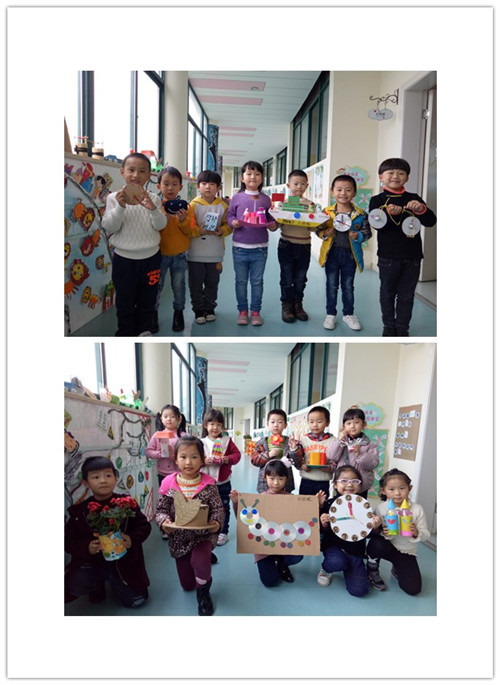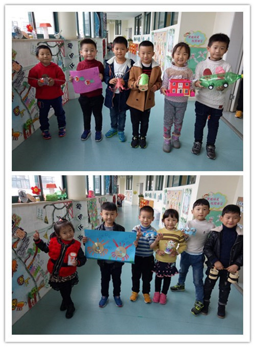 本月的子主题之一是环保小卫士,目标是了解垃圾的危害,萌发幼儿保护周围环境的意识;并初步了解垃圾分类及废物利用,进一步培养幼儿保护地球、爱护环境的情感与意识。 在主题活动中,我们一起认识了垃圾的危害,初步了解了地球的现状并认识和制作了一些环保小标志。 由于本次活动来源于幼儿的生活,是幼儿非常感兴趣的话题,幼儿也积累了一定的前期经验。在活动中所展示的资料和照片都是幼儿自己画的或自己用照相机捕捉的镜头,所以整个活动从始至终幼儿都有极大的兴趣。幼儿在已有的经验积累的基础上,通过回答教师提问和自己的讨论,对环境保护有了一个整体的认识,最后再通过自己动手操作,进一步加深了环境保护的意识。 在家园共育方面,家长和孩子们一起收集了保护环境的资料,并用实际行动制作了废物利用的亲子手工作品,更进一步的让幼儿理解了废物利用的含义。 瞧,我的亲子作品多有创意~~~`