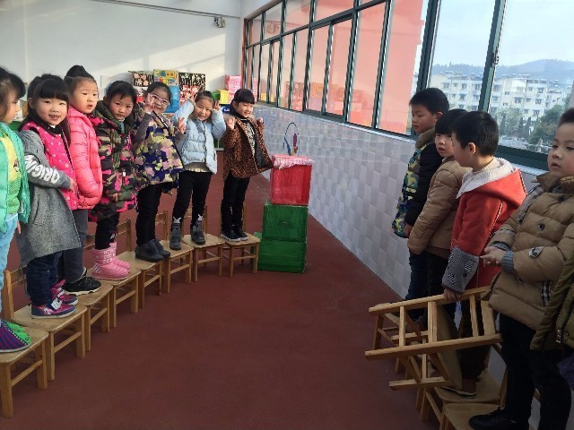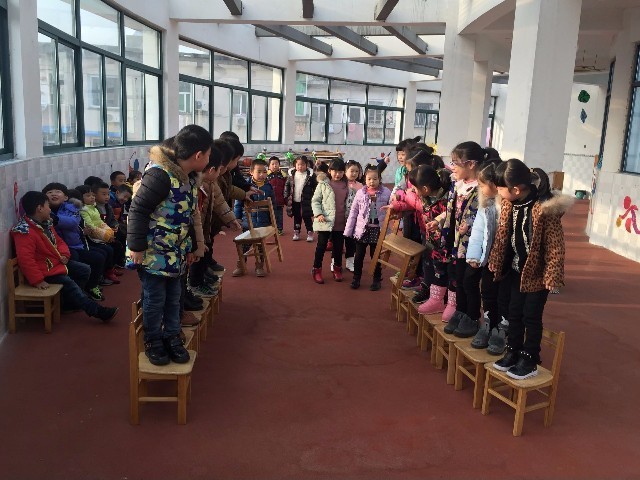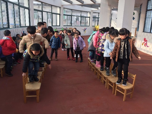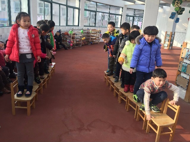 游戏背景: 最近我发现我们班的小朋友非常喜欢玩“抢椅子”的游戏游戏。可以说是百玩不厌。椅子其实有很多的玩法,可是我们每次都是利用椅子来玩抢椅子的游戏,今天我想带小朋友玩一个不一样的椅子游戏。我先鼓励幼儿自主进行探索,并且在旁观察幼儿,发现创新的加以表扬。请个别幼儿展示自己玩椅子的方法,并给予肯定与表扬。 游戏目标: 1、 通过游戏提高幼儿的合作意识。 2、 激发幼儿参与游戏的兴趣,体验游戏的快乐。 3、 训练幼儿四肢灵活的发展和协调。 游戏准备: 宽敞的活动场地、每人一把椅子、音乐。 二、游戏 “过河搭桥”玩法: 1、情景创设: 有一天,小白兔要到河的对岸去看她的好朋友梅花鹿,可是一场大雨把河上的小桥冲垮了,小白兔过不了河了,她想请我们大一班的小朋友帮忙到河上搭建一座小桥,谁想去给小白兔帮忙呢? 幼儿游戏: 两队幼儿各站在椅子上,排头第一的幼儿搬动第一把空椅子往前传,幼儿依次移动。不能掉下来。先到终点队为胜。 2、教师评价小结。 师:为什么这队获胜了?过小桥时想想怎么样才能稳稳当当地过小桥。你过桥时有没有碰到困难我们可以怎么样来解决怎么样才能很稳地过桥? 3、第二次游戏。 请幼儿两对并一队,变成一架长“桥”。 (1) 教师再次交代玩法。 (2)游戏规则:椅子不能掉下来。 4、 游戏结束。教师表扬幼儿勇敢的精神。引导幼儿要有合作意识。 本次游戏中,孩子们一直沉浸在游戏的角色中,整个游戏过程,孩子们的兴趣很浓厚。在第一次游戏中,幼儿没有掌握游戏的技巧,我通过总结,引导幼儿掌握了获得胜利的技巧。在第二次游戏中,孩子们基本都学会了与同伴之间默契合作。通过这次游戏不仅训练了幼儿的四肢灵活度,更提高了幼儿的合作意识。在游戏的同时体验了游戏给自己带来的快乐。