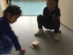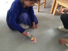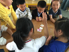 游戏效果: 孩子们在游戏中掌握了拍画片的很多技法,看似简单的拍画片,其实还有很多技巧,拍、扇、吸。拍,就是手掌平行于桌面重拍,用来拍单张;扇,就是手掌高举,快速扇向地面,这样会产生比较大的风,用来拍多张;吸,就是手掌拱起来拍已经拍翻过来的画片,把它吸正过来。刚开始玩的时候,很多幼儿没有掌握技巧很难将画片拍过来,我通过示范,孩子们很快掌握了拍画片的技法。通过这个游戏不仅锻炼了幼儿的手臂肌力,更提高了幼儿遵守规则的意识,也体验了自制玩具的快乐。 |