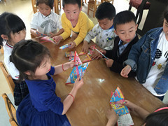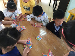 玩法四:画片大战 孩子们将折好的画片进行对战,这种画片的玩法与卡片式的画片的玩法则大不相同,用自己的画片去拍对方的画片,将对方画片拍过来为胜。在游戏中,孩子们纷纷表示:这种画片的玩法比较难!
