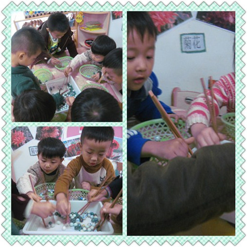 3、进行按数夹珠的练习,体验使用筷子的乐趣。