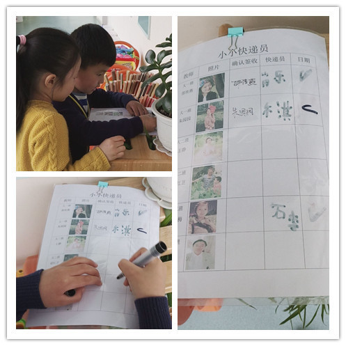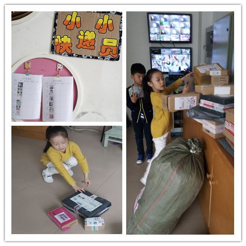 送快递啦!老师,你有快递哦,请签收!  今天的快递送完了,快递员要做好记录哦  |