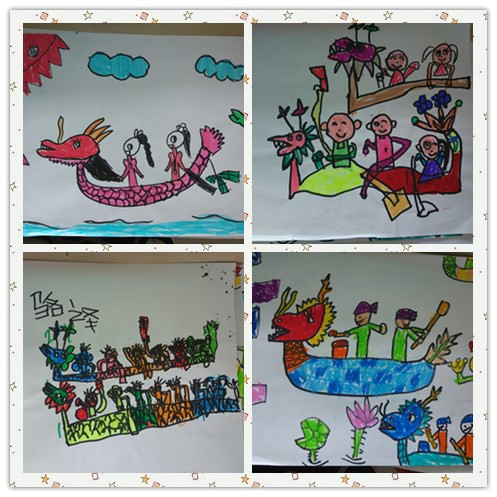 画笔勾勒出赛龙舟的热闹场景