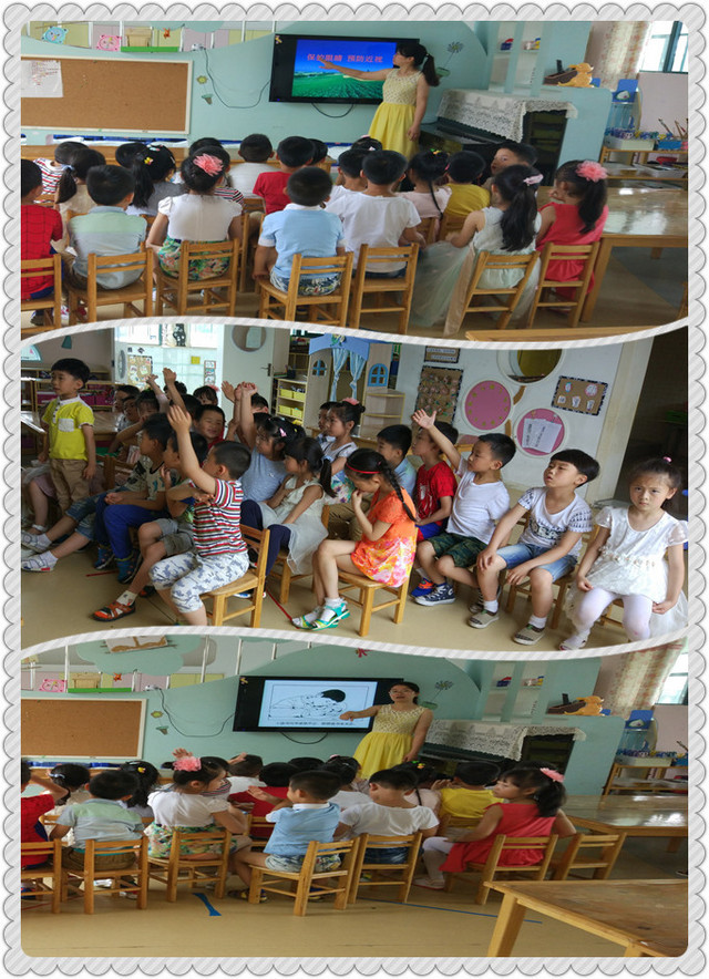 本次活动来源于生活中的谈话我们围绕此主题展开讨论,我和孩子们以为什么有些人需要戴眼镜这一问题,从“认识我的五官”、“眼睛的构造”、“我眼中的世界”三方面讨论。 此次活动中先让孩子说出到自己五官的名称,其次以图文并茂的向他们方式介绍眼睛的构造,知道眼睛是心灵的窗户,说说自己眼中的世界是什么样的,培养初步保护眼睛的意识。 在延伸活动环节中,请孩子先用手蒙住眼睛,讨论看不到世界时的心情,增强幼儿强烈的保护眼睛的意识。 瞧,在美术活动《我眼中的世界》中,孩子们正用画笔大胆表达记录着自己眼中的世界呢!