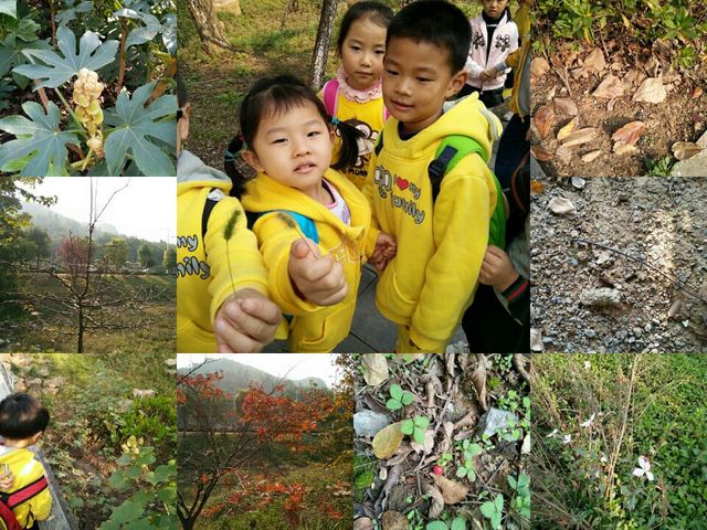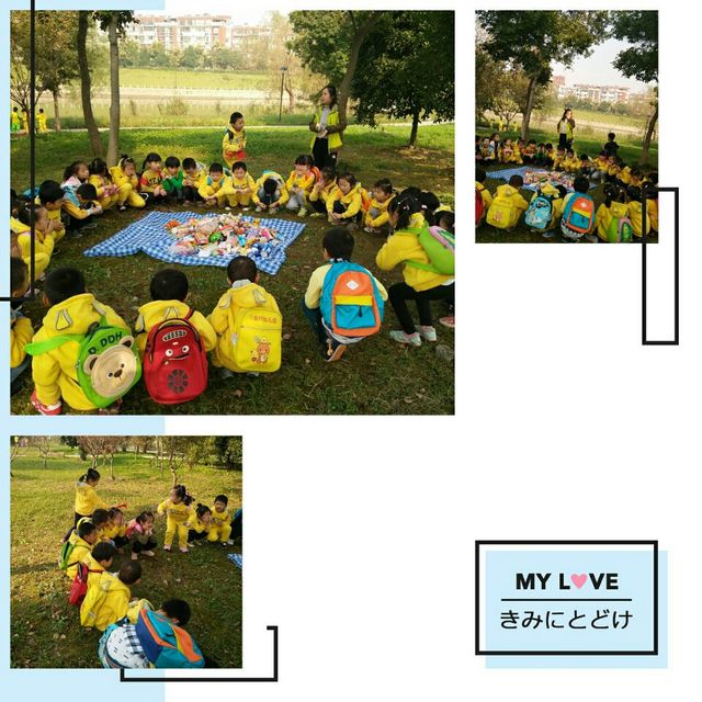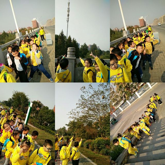 我们一起…… 亲爱的小朋友们,告诉你们一个秘密,今天我们和老师一起出去秋游喽!当我们知道周五秋游的时候可开心了,昨天晚上就和我的爸爸妈妈们准备了我秋游的小食物。今天早上我在小书包里装了满满的我爱吃的零食,等会与我最喜欢的小朋友们一起分享美味!早上老师问我们喜不喜欢秋游,我大声的告诉老师,我们特别喜欢,特别特别的喜欢秋游。 出发前老师说了几点要求,我们记住了,因为我们是大班的小朋友,我们长大了,可以做一个文明友好的小朋友。但有的时候我们控制不住自己,还需要老师提醒一下哦! 做好准备工作,我们每人手拉着自己的小伙伴排队前行,出发喽! 在路途中,我们和好朋友开始说着我们想说的,我们要说的!当然我们也怀着一颗爱国的心,唱着我们的《大中国》开始前行! 来到了美丽的河畔上,我们发现了一个大怪物,在树上,圆圆的,像气球,也像炸弹!我们惊讶的尖叫着!后来里面飞出来一些黄蜂,原来是一个黄蜂窝!呀,得赶紧走开!虽然我很好奇,但我不想被蜂子叮咬! 来到了马路边,我们看见了高高的冲向天空的东西!知道这是什么吗?我们讨论着,小徐子涵说:“我知道这是电线,上面有很多的电,我们家里的电就是它们传送的。”姚致远说:“这个像导弹!”鲁霖龙说:“这是火箭飞船!”