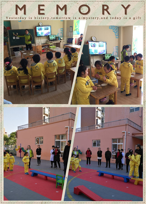 餐点是我们爱吃的,每天我们都会吃点心喝豆浆!今天也是!吃饱喝饱过后就开始了我们的教学活动!因为场地与人数的问题,老师将我们分成了两组!一组跟着毛老师在操场与王志远的爸爸一起玩健康活动哦!虽然不是毛老师,但是……“嘿嘿,是男生,我们喜欢男老师给我们上健康活动。”还有一组和李老师一起在班级进行综合教学活动《奇妙的下午茶》。我们一起玩起了节奏游戏,在游戏中我们赢了还能赢得真得点心!超级开心!