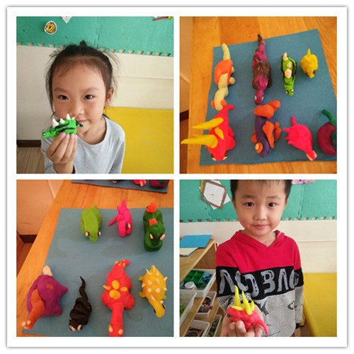 活动四:艺术活动 自由绘画《假如世界还有恐龙》泥工《恐龙王国》 活动目标: 1、激发幼儿的想象力 2、发展幼儿小肌肉动作发展 活动过程: 1、讨论,想象如果还有恐龙,世界会是什么样 2、自由绘画 3、欣赏讲述 4、装订成册 5、讨论泥工恐龙制作方式 6、讲述自己想要制作的恐龙 7、示范 8、幼儿自己操作