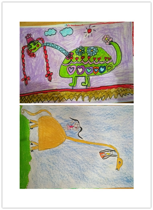 在幼儿了解了恐龙后,孩子们拿到了橡皮泥后便开始做自己喜欢的恐龙,每个孩子都能做出自己喜欢的恐龙的样子,但如何将恐龙的四肢立体的呈现出来对孩子们来说是个难点,在制作的过程中有个孩子说可不可以用牙签将其固定起来,后面一个小朋友先探究了一下发现可以。于是我请孩子们用牙签将恐龙的四肢与头固定,孩子们操作起来最后呈现出来效果还可以!有的小朋友将自己喜欢的恐龙的样子用笔画了出来,同时加入的别的元素。在绘画的过程中,有的孩子不会画恐龙的样子,有的孩子不敢画,我都鼓励幼儿大胆的画出来! |