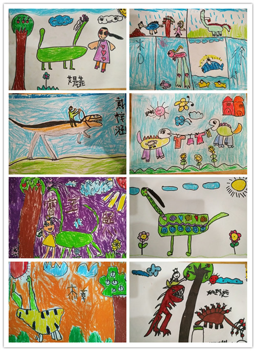 活动评价: 孩子们一直对恐龙都很感兴趣,上午孩子们通过故事视频了解了恐龙的出生,并且了解了恐龙属于卵生动物,而有些动物属于胎生动物,通过《恐龙的灭绝》小故事让孩子们了解了恐龙的灭绝原因,我让孩子们畅所欲言,讲述自己对恐龙的想法,活动的最后一个环节,孩子们自由讨论如果世界上还有恐龙,他们将和恐龙如何相处,以及知道恐龙将会和小朋友做哪些事情!有的孩子说:如果还有恐龙,他们将会和腕龙做朋友,让腕龙带着他们去幼儿园玩。有的小朋友说如果还有恐龙,会让恐龙帮助人们驮很重的材料,像大货车一样。有的孩子说如果还有恐龙,会让脖子长的恐龙与自己做朋友,让他们的脖子变成滑滑梯!还有的小朋友说会让恐龙变成天桥,帮助人们过马路……每个孩子的内容都不尽相同,但都表达了对恐龙的喜爱,愿意与恐龙一起做朋友。