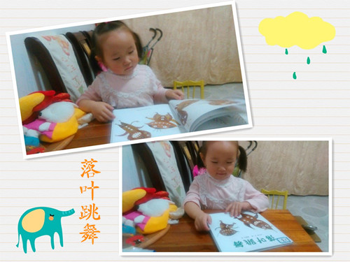 亲子阅读绘本 开启悦读之门 -绘本《落叶跳舞》读后感 秋意浓,落叶美。周五晚上,我和胡鑫慧一起迫不及待地首次阅读了绘本《落叶跳舞》,带给我们落叶跳舞之美的视觉体验,更感受到了落叶的快乐与洒脱,落叶也有生命力。 《落叶跳舞》主题非常鲜明,文字精练,大多是落叶组成的美丽图画,有大自然各种各样的角色,给我们提供一个广阔的思考和想象的空间。在鑫慧刚打开绘本时,落叶们有趣的神情、活泼的动作深深地吸引了鑫慧的目光,随着我低声、慢慢的引读,孩子也慢慢地走进了落叶的世界。接着,我带着鑫慧一起和落叶进行交谈,请鑫慧说说看到了哪些小动物,他们有怎样的表情,在干些什么。鑫慧从绘本中而来,尽情地看、读,时不时还比划一下,和我说出落叶的各种造型。看到那么多可爱的树叶跳舞,多奇妙!我们不禁赞叹作者丰富的想象力。一遍读完,小家伙还要我再读一遍,边读还边问我,这是什么小精灵?它怎么只有四颗牙?……稚嫩的童音,却折现出孩子内心的好奇与对知识的渴望。一整晚,小家伙都很开心,学会了讲述简单的故事,还认出了小乌龟、小猫等小动物。 此次睡前阅读,不仅打开在想象世界里遨游之门,增强了孩子的语言表达能力和观察力以及想象力,给了我们捡拾树叶做手工的灵感,增进了亲子情感交流,更在有限的绘本阅读中尽情享受阅读带来无限乐趣。