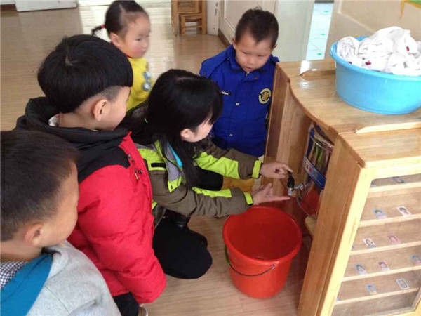 遇见开水的地方,不能用手指玩水。如果想喝水,可以叫老师帮忙。