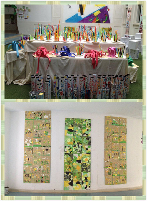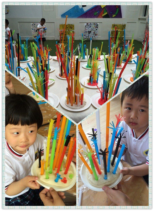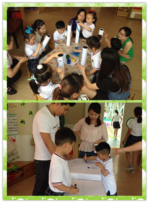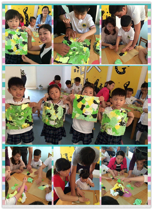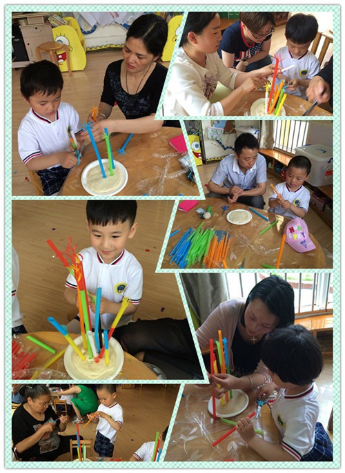 2、创意美术 5月31号下午家长们早早的来到幼儿园,期待着与孩子们共同参与创意美术。为了让家长与孩子们感受创意美术的乐趣,教师们为孩子们准备了丰富多彩形式多样的材料。活动开始了,无论是彩泥创意、吸管插艺或是纸筒与纸箱快乐涂鸦。孩子们与家长们都尽情的享受着创意美术带来的乐趣。