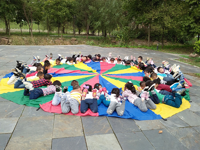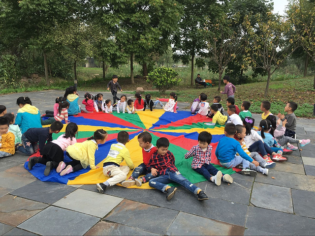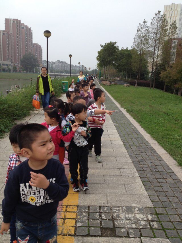 上个星期准备带着孩子秋游的计划被一场小雨给打断了,这周本打算周三秋游的计划于今天早上临时改变为今日秋游。孩子们本准备好的零食也没有顾得上带到幼儿园与其它孩子在秋游时分享。当孩子们知道今天春游时的第一反应是:“老师,我没有带吃的啊!”为了让孩子们不扫兴,保育老师将孩子们上午的水果——香蕉、巧克力派带上了,以便幼儿在秋游中途可以分享。 早操结束后,孩子们吃完了早点,整理了衣服便出发了。孩子们和我兴奋的踏上了秋游之路。一路上我们的男孩与女孩手拉着手,在老师的带领下结伴出行。孩子们走出了幼儿园的大门,来到了峨溪河畔。一上河畔孩子们就惊奇的发现了河畔边上的南门河的水,以及河对面的垂钓之人。孩子们你一言我一语的诉说这河畔上秋天的秘密。在孩子们的交谈中,我带着孩子们一起寻找初秋的变化。孩子们发现了树上的果实,红色的枫叶,飘落在地上的黄叶。眼尖的小朋友发现了地上的蒲公英。一个孩子说:“春天有蒲公英,秋天怎么还有蒲公英呢?还开着花儿呢”说着说着,几个孩子便唱起了《国旗国旗多美丽》《小娃娃跌倒了》的儿歌。大家一路交谈一路欣赏秋天的美景。不知不觉我们来到了春早公园。找到了一块空地,我和孩子们将彩虹伞铺开,孩子们坐在彩虹伞上等待这老师分享带来的食物。活动第一项分享食物,尽管旅行仓猝决定,但一点也没有扫除孩子们的性质。孩子们先分享了香蕉。香蕉分享完后,我和孩子们玩起了游戏《丢手绢》。孩子们在游戏中快了的奔跑着。讲述着准备已久的谜语。最后大家一起分享了食物巧克力派。食物分享结束后我们和孩子们一起进行了彩虹伞相片大比拼。 这个上午虽然我们都走的很累,但是我们都很开心。孩子们学到了许多无法幼儿园里学到的知识,大自然是孩子们最好的学习场所。