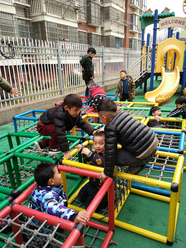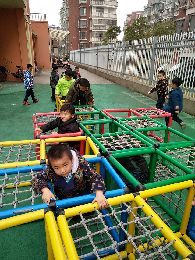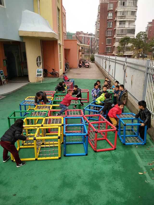 攀爬渔网创新玩 攀爬渔网是我园今年新添置的大型玩具,非常受孩子们的喜爱。每次孩子们户外活动遇见色彩鲜艳的攀爬网时,孩子们都十分的感兴趣。特别是男孩,喜欢在攀爬中玩游戏。在攀爬活动中发展了幼儿的身体协调能力。本次带幼儿户外活动时,孩子们向往常一样在攀爬网的一头排队等待。但由于幼儿人数较多,在等待的过程中后面等待的幼儿有的按捺不住,有打闹的现象。于是我改变了之前的玩法。我说:宝贝们,你们想换种玩法吗?“想啊”“那你们觉的这个攀爬网可以怎么玩呢?”一个孩子说:“老师,我们可以将这些玩具搬走玩吗?”“当然可以了!” 于是孩子们便开始了新的玩法。孩子们三三两两的结对,将原先摆放好的玩具打乱平放。打乱结束了,一个孩子说:“老师,你看,我们的大迷宫,哈哈,好大的迷宫。”说完孩子们便开始了自己的迷宫之旅。孩子们从不同的入口钻进攀爬网。然后沿着攀爬网自带的空间进行游戏。最后每个孩子自己找到出口后都有成就感。开心的说:“老师,我出来了!”我再从别的进口进去,然后我再出去。这个迷宫真好玩。 攀爬网的新玩法激发了孩子们更多的游戏兴趣。在自由搭配拼迷宫的同时既发展了幼儿的创造性思维,培养了幼儿的自主性。同时也发展了幼儿的合作性。