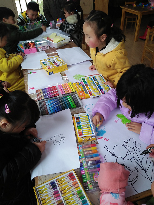平时在上美术课的时候,孩子们总是根据老师教授的东西来进行绘画,很少有机会根据自己的意愿来作画,在开展区域活动的时候,我们班很多的孩子都想在美工区进行绘画创作,问她们为什么喜欢画画,她们总说画画非常好玩。其实后来想了想,孩子之所以那么喜欢画画,可能是因为平时在上课的时候有很大的局限性,老师说今天我们学习画帽子,手套等,孩子只能跟随老师的意愿去作画,但是没有自己想象的空间,没有自己去发挥想象去创作的空间,孩子有很多的情感都不太会用言语表达出来,但是可以通过绘画来表现,这可能也是儿童世界的一种感情,记得有个孩子以前画了一个蓝色的太阳,问她为什么画了蓝色的太阳,她说因为我今天的心情不太好,觉得太阳是蓝色的。这个孩子的想法很让我震惊,她打破了我们对于一些日常模式的认知,原来太阳不单纯是红色的,她可以是各种颜色。给孩子一定自由想象的空间,才能走进她们的心里世界。