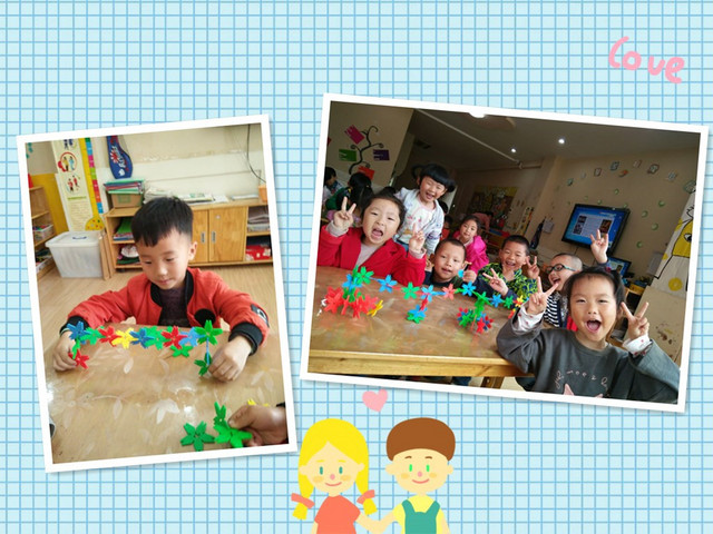 创新游戏:各种各样的桥 游戏来源:最近这段时间我们在进行主题活动《我的家乡真美》。孩子们学习了家乡的桥。知道桥有高架桥、铁索桥、拱桥与斜拉桥。每一种桥都不一样,它们都由哪些部分组成?如何制作一座自己喜欢的桥?中班幼儿已经基本能够与身边的人一起进行合作,如何更好的激发幼儿的合作能力,本次的探索活动以小组为单位。 游戏目标:1、激发幼儿的探索能力 2、培养幼儿的合作能力 游戏材料: 雪花片若干 游戏玩法: 1.幼儿5人一组,一起商量制作什么样的桥,如何将手中的材料全部用玩。 2.幼儿相互合作,相互分工完成各自的任务。 3、在相应时间内率先完成作品的幼儿获胜。