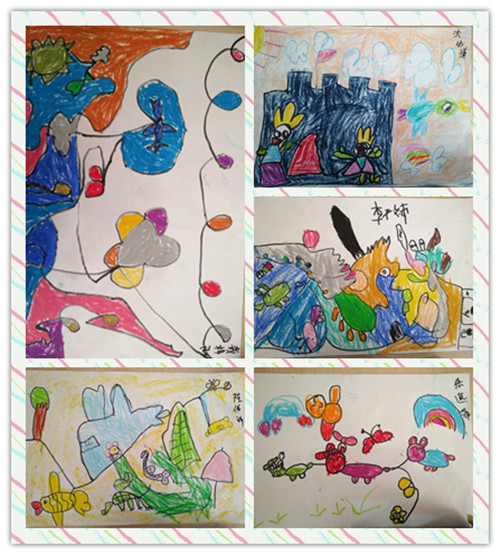 美术活动 活动目标: 1、欣赏用一根线所创造的有趣画面,感知新奇独特的艺术表现方式。 2、尝试用线表现不同的造型,体验大胆想象、创作的乐趣。 活动准备:记号笔,卡纸,油画棒 活动过程: 1、幼儿欣赏画面内容 师:小朋友,你们还记得上绘本活动《跟着线走》的内容吗? 幼回答 师:谁可以说说那个神奇的线都去了哪些地方旅行了?他将自己变成了什么? 幼回答 2、幼儿感受用线造型的魅力。 (1)画面一:大海 师:猜一猜,线带我们来到了什么地方?(教师逐步演示PPT课件中大海及帆船的分解图,幼儿跟随分解图自由猜想。) 师:这片大海和这些小帆船是什么变的? 师(小结):神奇的线带我们来到了大海边。真有趣! 师:这根线还会带我们去哪里旅行呢?(幼儿自由猜想。)我们跟着线出发吧。 (2)画面二:天空 师(放音效):听,什么声音?(飞机声。)看,我们来到了什么地方?(天空。) 师:怎么没有飞机呢?(教师逐步演示PPT课件中的分解图,幼儿用手指在空中画飞机、热气球等造型。) 师(小结):这根线带领我们看到了不一样的风景。真神奇! (3)画面三:动物园 师:现在线又带我们来到了哪里?动物园里有哪些用线变出来的动物? (教师针对幼儿的回答及时回应,如:有弯弯曲曲的小蛇,有长着长耳朵的小兔子……使幼儿感受到动物园里有许多动物可以用线来表现。) (4)画面四:小农庄 师:线变出了农庄里哪些有趣又好玩的东西?(如美丽的小树林、漂亮的小房子等。) (析:在该环节中,幼儿共欣赏了四个画面。在欣赏画面一和画面二时,教师通过动态演示线的变化过程,引导幼儿理解用线变出不同物体的方法,解决了造型表现的难点问题;在欣赏画面三和画面四时,教师通过提供不同维度的画面,拓展幼儿的视野,拓宽他们的想象空间。) 3、师幼互动,演示用线造型的过程。 师:这根神奇的线带领我们环游了好多地方。如果你也有一根神奇的线,会带我们去哪里旅行呢?我们可以看到什么呢? 师:这里有一块神奇的魔术板,谁来试试看? 4、投放材料 5、幼儿操作 6、作品欣赏