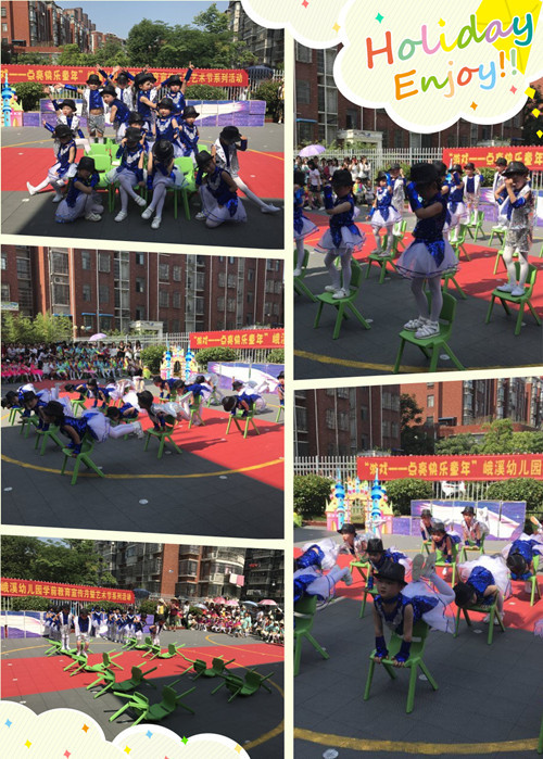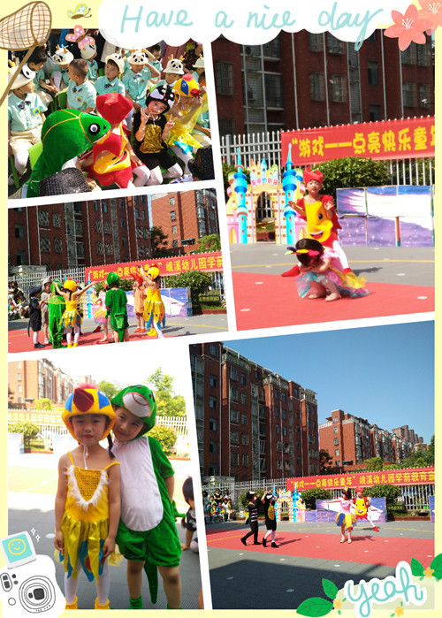 活动二:小小舞蹈——乐乐乐 周五上午7:00我们在爸爸妈妈的陪同下早早的来到幼儿园,老师们拿出了化妆品,嘻嘻!我们非常开心,因为我们可以化妆了,这样我们就是美美的啦!8:15,我们所有的小朋的画好了妆,吃完了点心,我们和老师一起来到操场上,欣赏着各式各样的节目!诶,真希望自己的节目赶紧到来。有点迫不及待了!不过大班的哥哥姐姐们他们的节目真的很不错哦!终于到我们了,令全场兴奋的爵士舞!看看我们的衣服就知道了!闪闪的衣服亮的布灵布灵的!音乐开始,我们可开心了!当然,这也是我们跳的最认真最好的一次!整齐吧?嘿嘿……还有童话剧《彩虹色的花》哦!