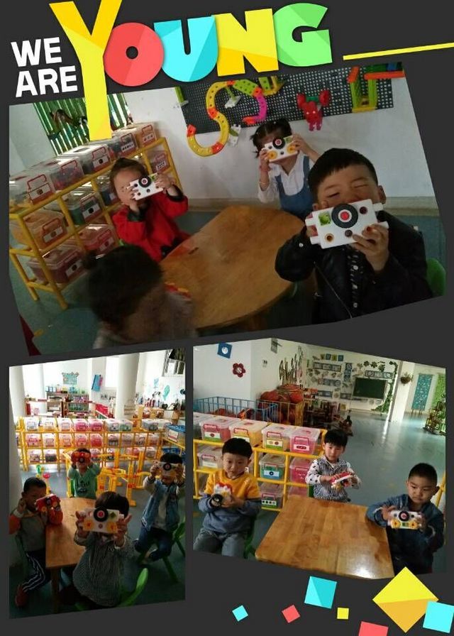 照相机 下午,老师带着我们来到他们盼望已久的智高活动室!每一次我们从智高活动室旁边经过的时候都会羡慕不已。 今天老师带了我们班12个小朋友来到了这里!有表现棒的小朋友,也有比较调皮的小朋友哦!不过今天大家来到这里都特别的安静!大家被活动室的器械吸引了!首先这些材料的颜色真好看。其次就是这些里面的材料真的很丰富。看到了展示板上有很多的哥哥姐姐做好的作品放在上面展示,我也好想赶紧操作啊! 当然,这个是不能急的!今天,老师说准备教我们制作照相机!老师将需要制作照相机的材料准备好了!然后告诉我们每种材料的功能。在老师示范了一次之后,老师就邀请我们每个小朋友领取自己的材料,然后大家开始操作了! 刚刚老师说的时候,我听的很认真。怎么到自己手里操作,又有些记不清了呢!嘿嘿!不过没有关系,老师来了,给了我一个小小的提醒,我就会了! 大家看看,我们的相机制作好了哦!